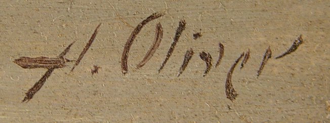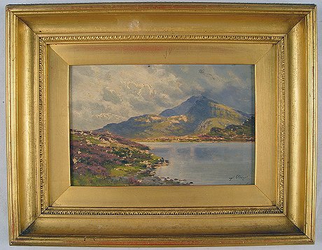 OLIVER, H., (English, 19th/20th C.): Highland Lake, OIL/B, 6 3/4'' x 10'', signed, gilded frame, 10'' x 12 1/4''. Some sporadic paint loss, needs cleaning.