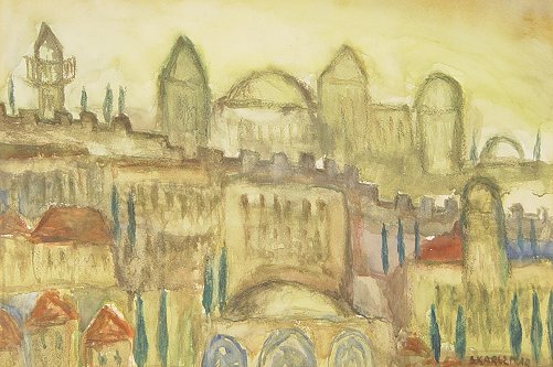 KARCZMAR, Simon, (Russian, 1903-?): Jerusalem, W/C, 13'' x 20'' sight size, signed, framed, 22'' x 29''.