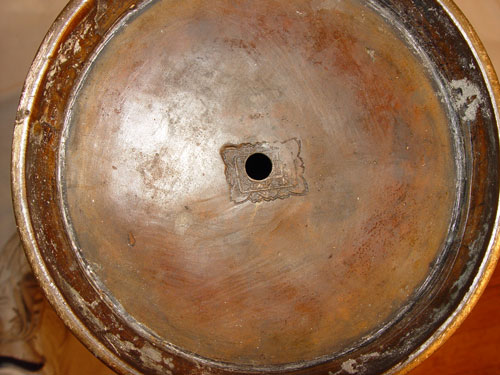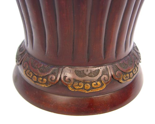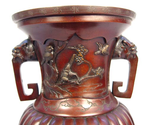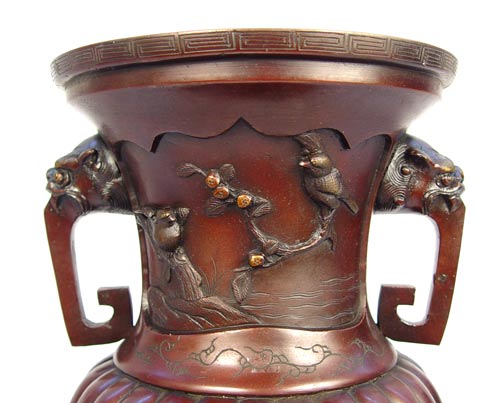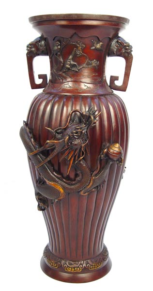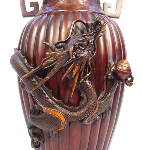 2 FEET TALL JAPANESE MEIJI PERIOD BRONZE VASE: With dragon wrapped around the body of the vase. drilled for use as a lamp, the drill hole through the touch mark.