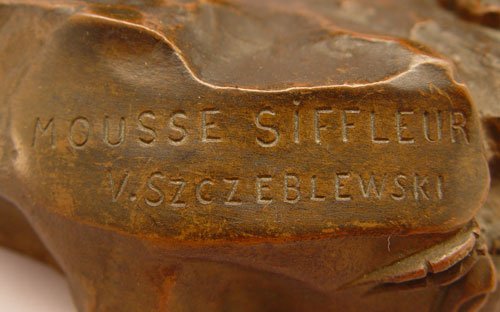 SZCZEBLEWSKI, Vaclaw Bernard (Polish 1888-): ''Mousse Siffleur'', Bronze, 22'' high, signed, titled, stamped ''Bronze Garanti Au Titre L.V. Deposee''. Mild wear to patina.