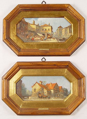 COZZUOL, Sergio, (Italian, 19/20th C.): Pair of Village Scenes, Oil/Copper, 4 1/2'' x 9 1/2'' octagonal, signed, framed, 9'' x 14''.