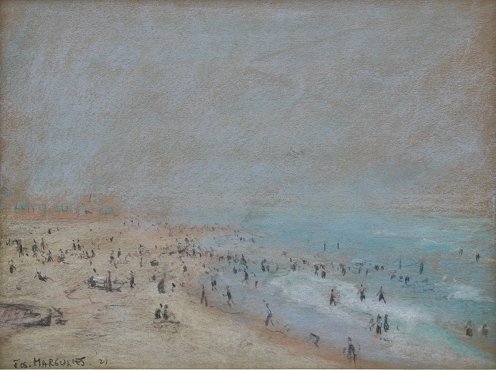 MARGULIES, Joseph, (American, 1896-1984): Beach Scene, Probably NYC area, Brighton, Coney, etc., Pastel, 8 1/2'' x 11 1/2'', SLL and dated '21, contemporary framing, 16'' x 19''.