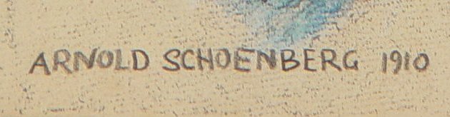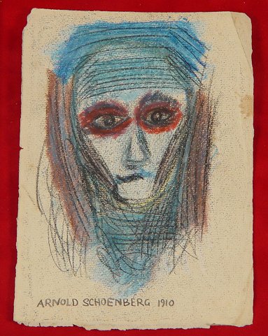 SCHOENBERG, Arnold, (American, 1874-1951): Portrait, Colored Pencil, 7 1/2'' x 5 1/2'', signed and dated 1910, exceptional contemporary framing.