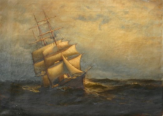 WEBER, Otis (American 19th/20th century): Maritime Ship Scene, Oil/C, 30'' x 42'', signed and dated, wooden frame, 35'' x 48''. Scattered spots of flecking, will need restoration.