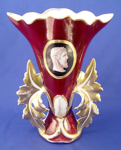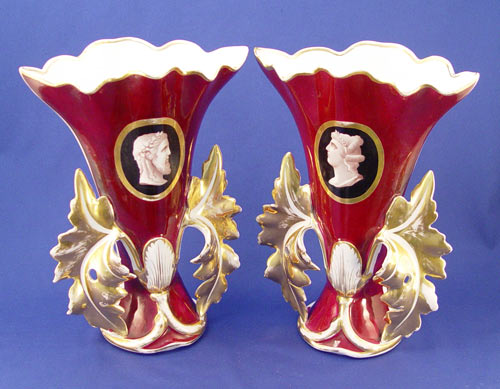 PAIR OLD PARIS PORTRAIT VASES: 12'' high x 9'' wide at rim
