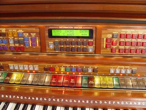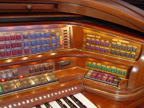 LOWERY MAJESTY ORGAN LX510: MUST BE SOLD to settle estate. Plays beautifully. 61 notes upper manual, 61 notes lower manual, 25 note pedal board. Multiple rhythm styles, features, presets and orchestral sounds. Graphic mixer, 2 line LCD display. Many other features. Sold As-Is, estate piece, seems to work just fine. Measures approx 54'' high x 52'' wide x 29 1/4'' deep. Stool measures 11'' high x 28 1/2'' wide x 15 1/2'' deep. Approx. 535 lbs.