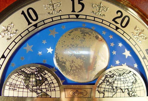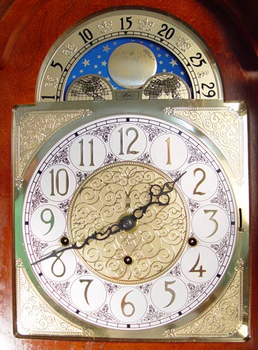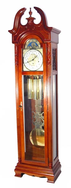 CHERRY RIDGEWAY GRANDFATHER CLOCK: Cherry appearance finish, weight driven moonphase with single chime and silent. Measures 82 1/2'' high x 22 1/8'' wide x 13'' deep.