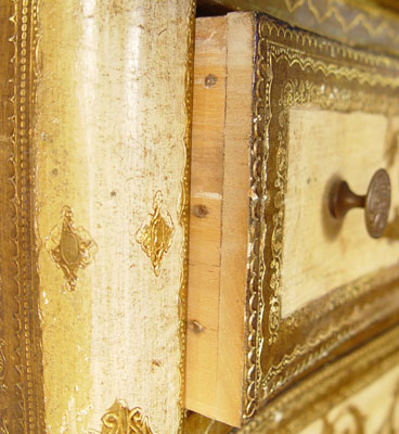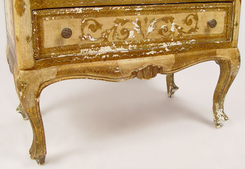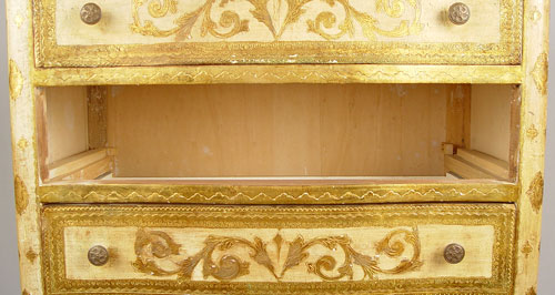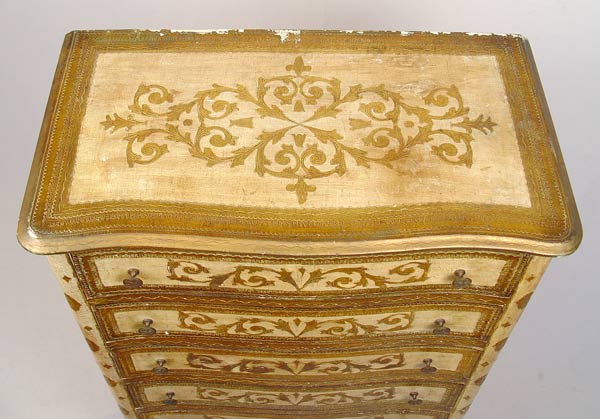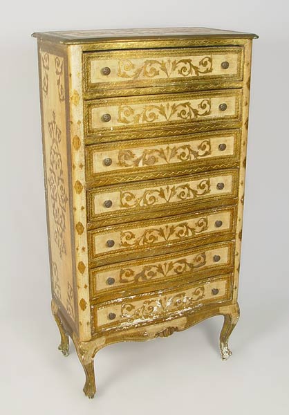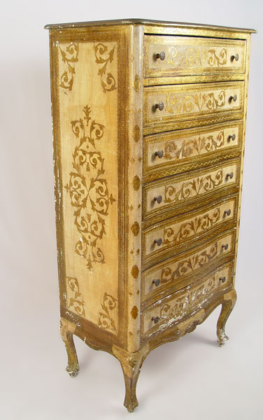 ITALIAN FLORENTINE GILT WOOD LINGERIE CHEST: 7 drawers 49 1/4'' high x 26 1/4'' wide x 14 1/4'' deep. Marked Saffa Industrie Legno Somaglia under drawer. Please note condition of finish.