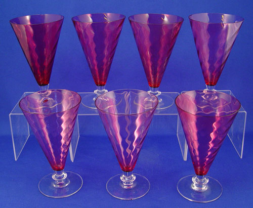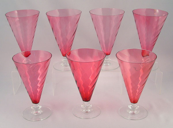 7 CRANBERRY GLASS ICED TEA STEMS: 6 1/4''h.