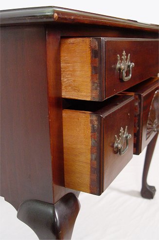 CHIPPENDALE STYLE MAHOGANY LOWBOY: 4 drawers with center bottom having shell carving, ball and claw feet. 30''h. x35'' x 21''. 20th C.
