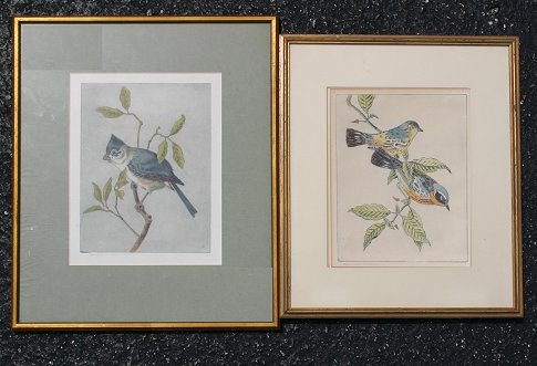 MOORE, Benson B., (American, 1882-1974): 2 Etchings, ''Magnolia Warblers'', 9 1/4'' x 7 1/2'' sight size, pencil signed, edition of 30, original label verso, framed, 15'' x 13''; ''Tufted Titmouse'', 10'' x 8'', pencil signed, edition size of 35, original label verso, framed, 16'' x 14''.