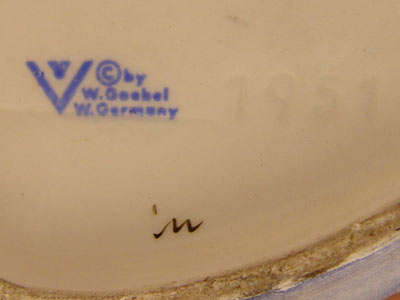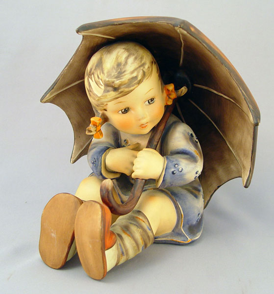 LARGE UMBRELLA GIRL 8'' HUMMEL 1951 152 B: Mark 4, 1964-1972 Hummel Umbrella Girl. No chips, repairs, or cracks. Measures 8'' high x 6'' long. No box.
