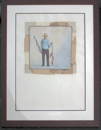 ''A GOOD DAY'', ACRYLIC ON PAPER SIGNED MARIA EVA: Depicts a lucky little fisherman, 33'' x 24'' sight size, framed, 44''x 35''.