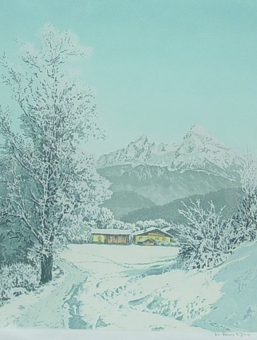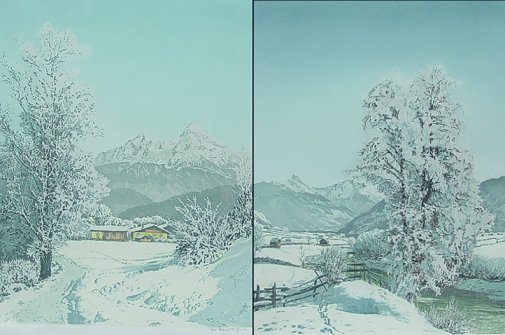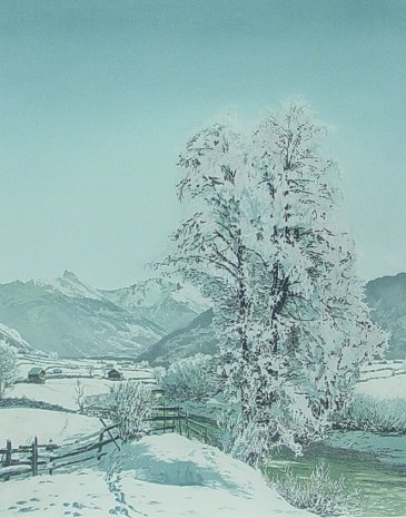 FIGURA, Hans, (Austrian, 1898-?): Winter Scenes, Silk Etchings, 19'' x 15'' sight size, signed, framed, 26'' x 22''.