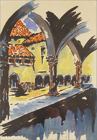 D'HAESELEER, Julian, (European, 20th C.): St. Croix Couvant, W/C, 18'' x 13'', signed and titled, framed, 24 1/2''x 19''.