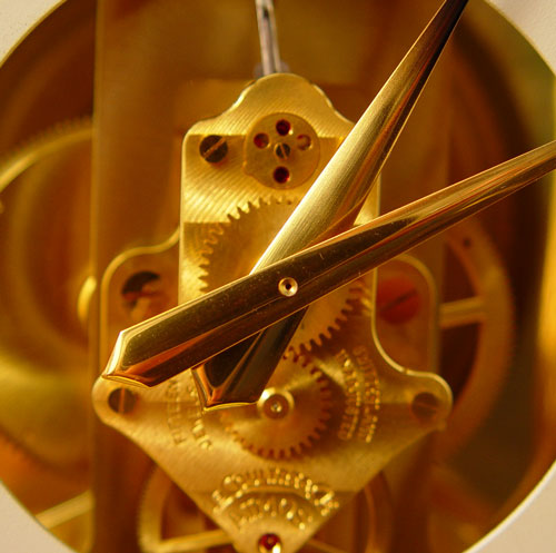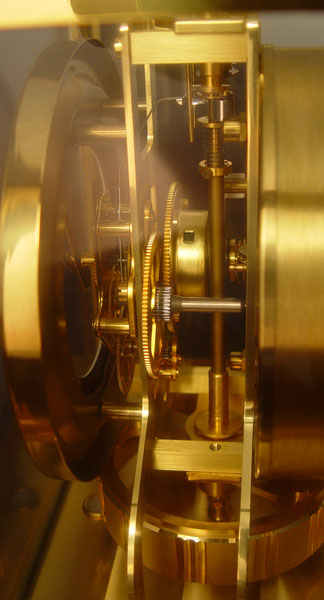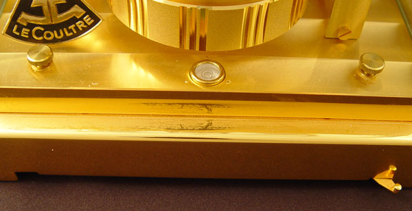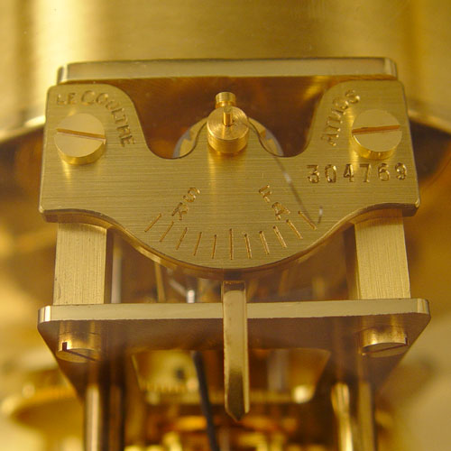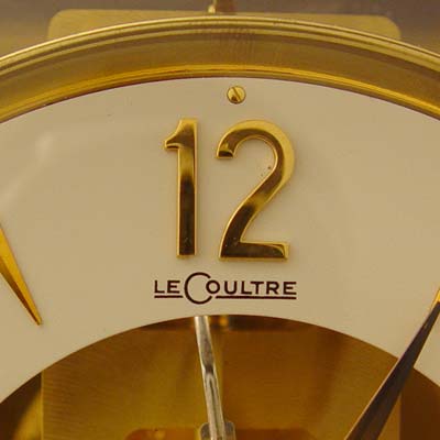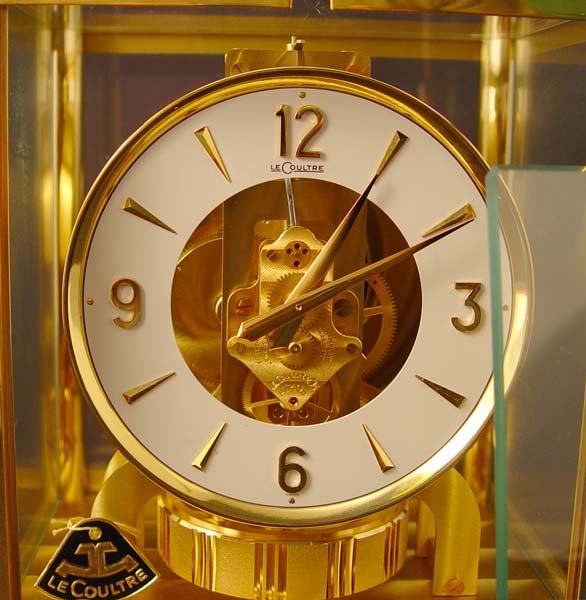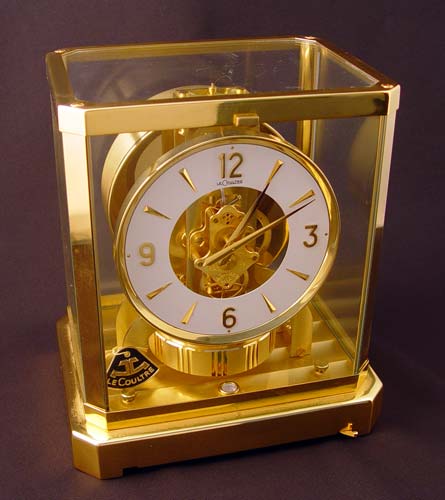 LE COULTRE ATMOS PERPETUAL MOTION CLOCK: Circa 1969. Brass case with glass sides and top. Serial number 304760. White dial 5'' dial. Measures 9 1/4'' high x 8 1/4'' wide x 6 1/4'' deep. Comes with original handbook.