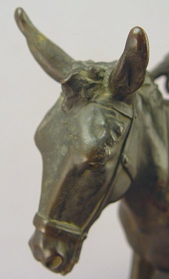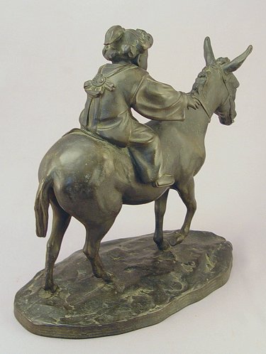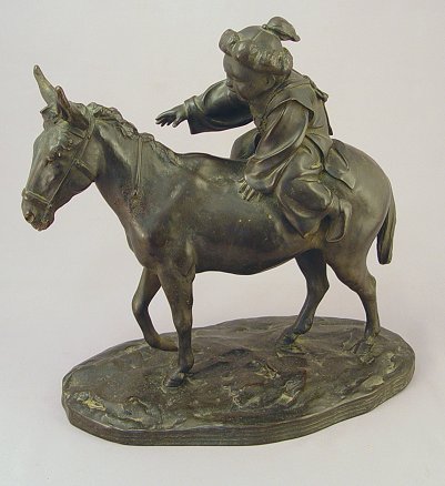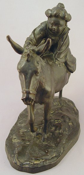 ORIENTAL BRONZE OF BOY ON DONKEY: 12'' h. s 13'' l'', unsigned, probably 19th C., some damage to bridal/portion missing.