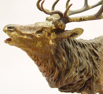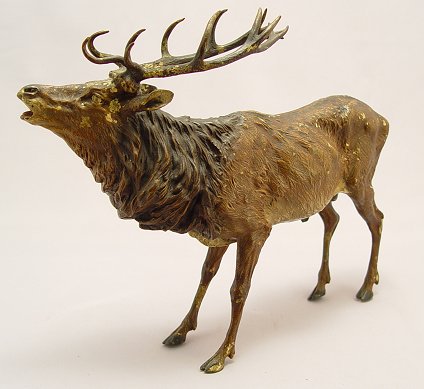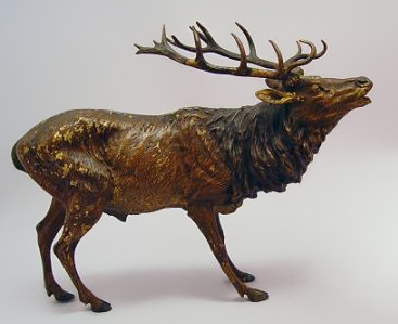BERGMAN COLD PAINTED AUSTRIAN VIENNA BRONZE ELK: Stamped Bergman mark, 3693, Geschutzt, 9 1/2'' h. x 11 1/2'' w. Some loss to paint.