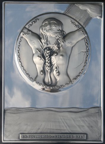 LA FECUNDIDAD STERLING PLAQUE AFTER SALVADOR DALI: 8 1/2'' x 6 1/2'', 249 grams, under plexi in nickel plated frame, 15'' x 13''. Est. $400/600**
