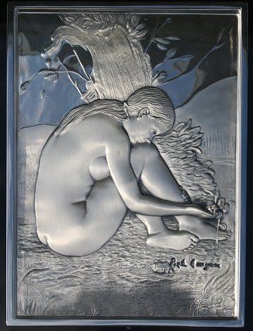 PIETRO ANNIGONI STERLING PLAQUE, 250 GRAMS: 9'' x 6 3/4'', encased in nickel plated frame under plexi, 15'' x 13''. Est. $400/600**