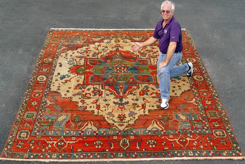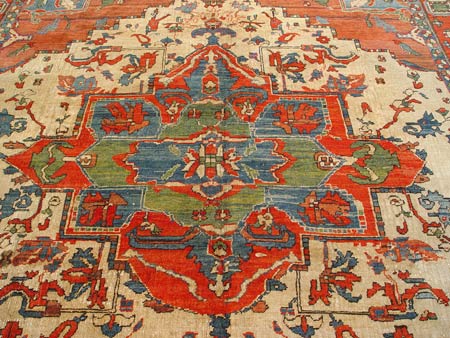 FINE TURKISH AVSHAR DESIGN CARPET: Hand spun wool, vegetable dye. Approx. 11' 8'' x 9' 9''.