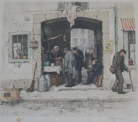 SIMON, Tavik Frantisek, (Czech, 1877-1942): Market Scene, Aquatint, 11 1/2'' x 12 3/4'' sight size, pencil signed 17 1/4'' x 19 1/2''. Not examined out of frame.