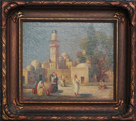 HENSEL, Adolph, (American, 20th C.): Orientalist Scene, OIL/C, 12'' x 14'', signed, custom period gilded frame with minor wear, 18'' x 20''. Needs cleaning, cracklure. Est. $200/400**