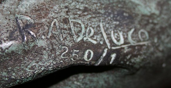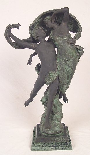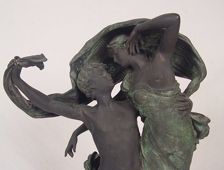FROLICKING COUPLE BRONZE SIGNED R.A. DELUCO: 33'' H.