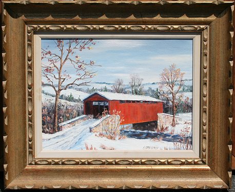 DREISBACH, Clarence I., (American, 1903-2001): ''Covered Bridge'', Wehr Mill, Jordan Creek, Lehigh Co. PA., OIL/CB, 12'' x 16'', signed, titled verso with artist's information, framed, 19'' x 23''. Est. $800/1200**