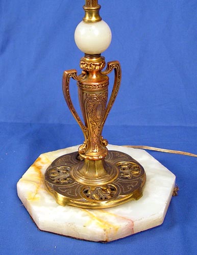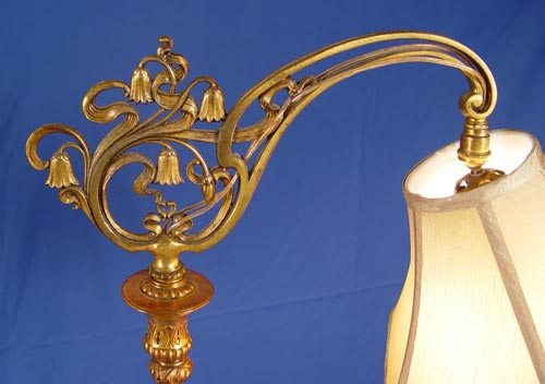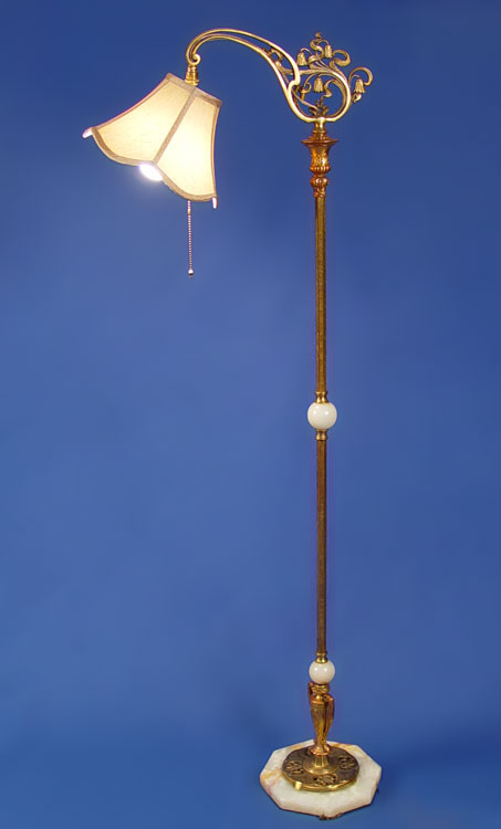 1930'S BRONZED AND ONYX FLOOR LAMP: Bell flower motif to the bridge. 9'' dia. octagonal base, 57''h.