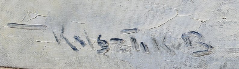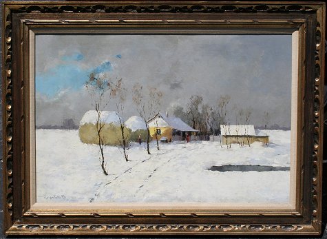 SNOWY VILLAGE OIL/C SIGNED KRISZTIK: 24'' x 36'', signed, framed, 35'' x 47''.