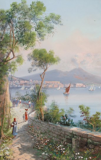 GIANNI, Maria, (Italian, 20th C): Naples Scene w/Mt. Vesuvius, Gouache, 19 1/2'' x 12 1/2'', signed and framed, 21 1/2'' x 14 1/2''. Est. $300/500**