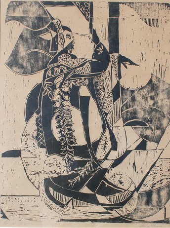 GURR, Lena, (American, 1877-): ''Kabuki Dancer'', Woodblock, 22'' x 16 1/2'' sight size, pencil signed and titled, framed, 28'' x 23''.