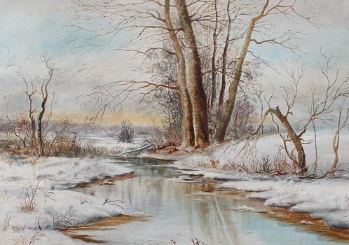 LATE 19TH/EARLY 20TH C. WINTER SCENE: OIL/B, 17'' x 24'', no visible signature, overpainted frame, 21'' x 28''. Est. $300/500**
