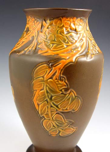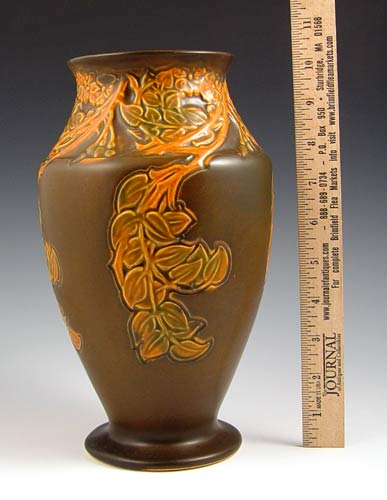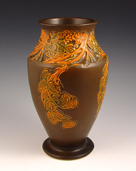 ROSEVILLE POTTERY VASE IN THE PANEL PATTERN: Note professional restoration on rim. Measures 10 1/4'' high x 5 3/4'' wide.