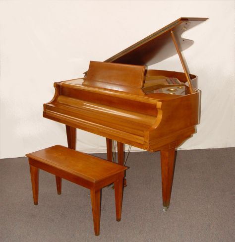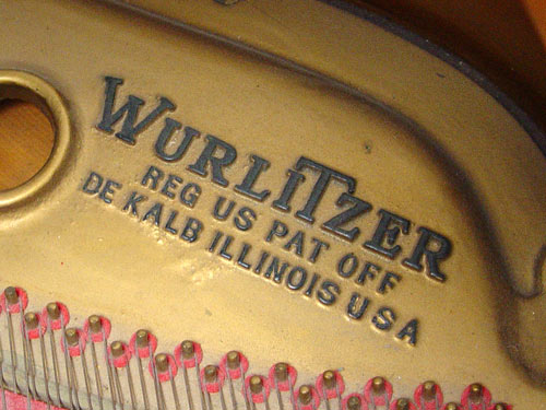 WURLITZER BABY GRAND PIANO: Serial number 891688 dates to 1964. Measures 38 1/2'' high x 54 1/'' wide x 57'' deep. Bench measures 19 1/4'' high x 32'' x 14''. Note condition of finish.