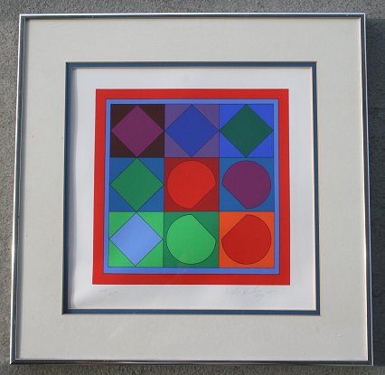 VASARELY, Victor, (Hungarian, 1908-1997): Abstract Composition, Serigraph, sight size 11 1/4'' x 11 1/4'', signed, numbered 108/215, encased in custom chrome frame and mat, 16 1/2'' x 16 1/2''. Est. $200/400**
