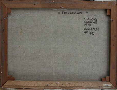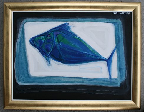 GORI, Giorgio, (Venezuelan, 20th C): ''Pescado Azul'', Oil/C, 18'' x 24'', signed, titled and dated 1974 verso, catalog 1197, encased in fine contemporary frame with minor wear, 22'' x 27 1/2''. Est. $400/600**