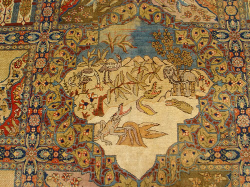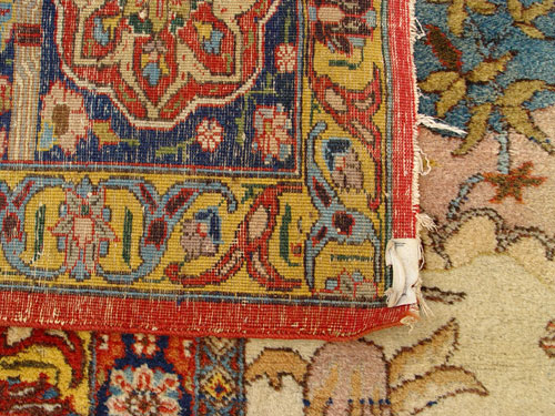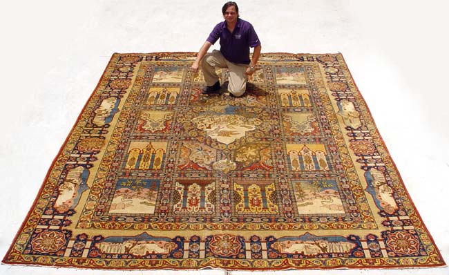 LARGE HANDMADE PERSIAN TABRIZ CARPET: Approx. 14' 5'' x 11' 3''. Raymond Whyte Estate. No Reserve. Note smal tear to border.