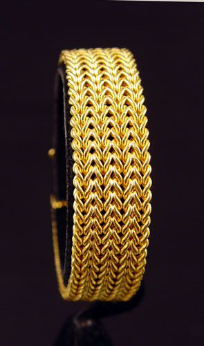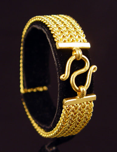 22K FANCY LINK BRACELET: 22K yellow gold fancy link bracelet with ''S'' clasp. Approx. 5/8'' in width. Approx. 7'' in length. Weight: 76 grams.