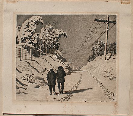 LEWIS, Martin, (American, 1883-1962): ''Cronies'', Drypoint, 12 1/2'' x 14'', pencil signed. A very rare print, this does have condition issues including insect damage and foxing, but certainly worth repairing; a legendary image by an American classic. Est. $1000/2000**