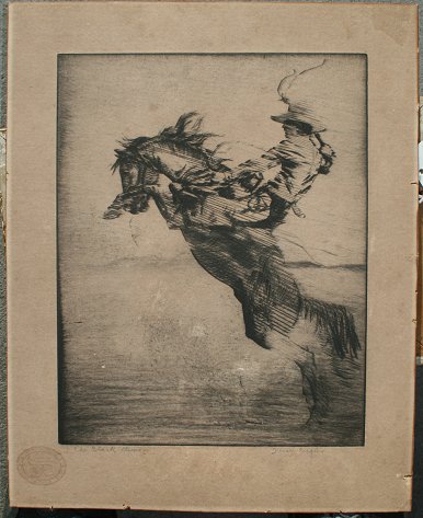 ZIEGLER, Henry, (American, 1889-): ''The Black Demon'', Etching, 18'' x 14 1/2'', pencil signed, titled and numbered, unframed, laid down. Toning throughout, several abrasions, some paper loss in the margin edges. Est. $300/500**