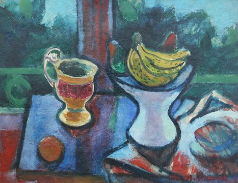 PICARD, Philippe Marie, (French, 20th C.): Still Life with Fruit, Oil/Canvas, 19 1/2'' x 25 1/2'', signed, encased in fine gesso frame with minor wear, 28 1/2'' x 34 1/4''. Condition - Painting has been re-lined.