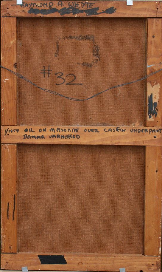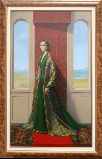 WHYTE, Raymond, (American, 1923-2002): Portrait of a Woman in green velvet dress and embroidered brocade drape, OIL/Masonite, 30'' x 18'', signed verso, burl wood frame, 34 1/2'' x 22 1/2''. Est. $700/900**