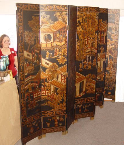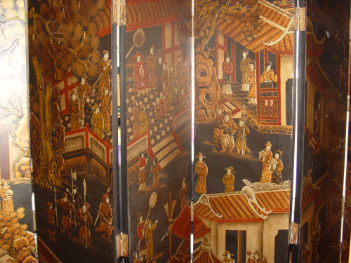 7 FT TALL 8 PANEL CHINESE SCREEN: Set of 8 hinged 16'' panels, late 20th C.