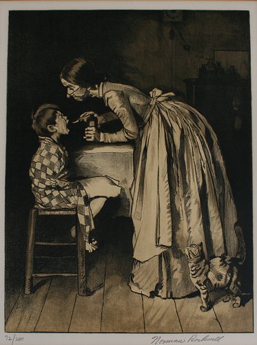 ROCKWELL, Norman, (American, 1894-1978): ''Medicine'', Lithograph, sight size 19'' x 15'', 25 1/2''x 19 3/4'' with margins, pencil signed, numbered 72/200, custom frame with minor wear, 30'' x 26 1/2''. Very mild toning/browning. Est. $800/1200**