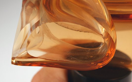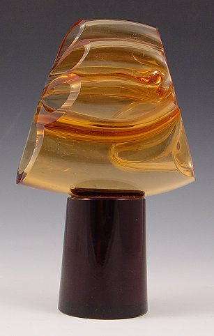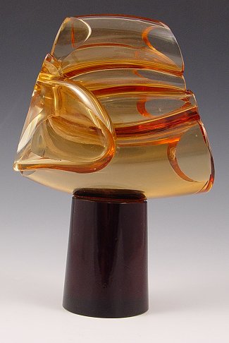 HARVEY, Littleton, (American, 9122-): Abstract Glass Sculpture, 8'' h., incised signature on glass base, several interior bites need grinding. Est. $800/1200**