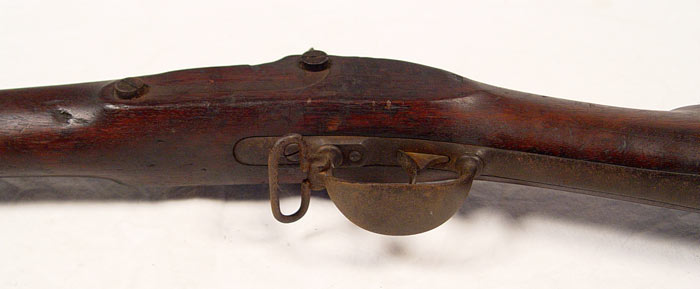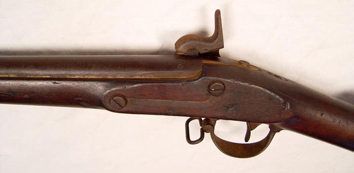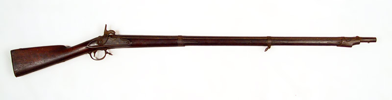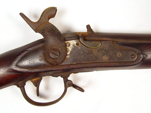MODEL US 1842 SPRINGFIELD RIFLE: .69 caliber. dated 1842 on lock with traces of eagle and US. Inspector marks on barrel and stamped 1840, action works. Dark age patina over entire barrel. Note heavy pitting on butt plate, chip to stock at plate, missing rod, overall condition.42'' barrel, overall measures 57 3/4'' long. Internet bidding is not available on this item. Est. $600/800**