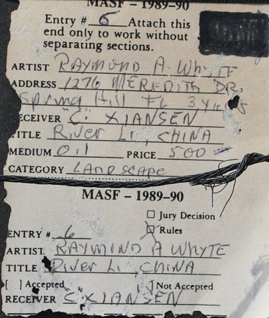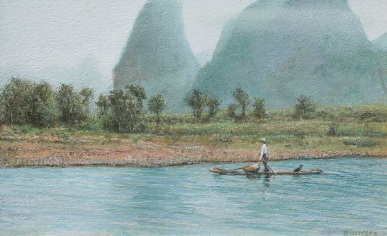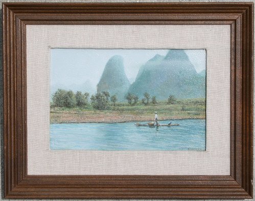 WHYTE, Raymond, (American, 1923-2002): ''River Li, China'', OIL/B, sight size 3 3/4'' x 5 3/4'', signed lower right, framed, 7 1/4'' x 9'', exhibition label verso. Est. $300/500**