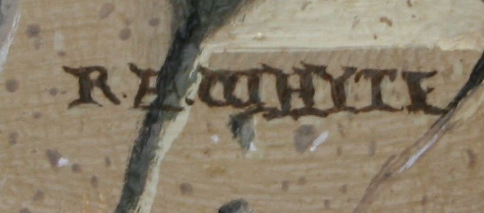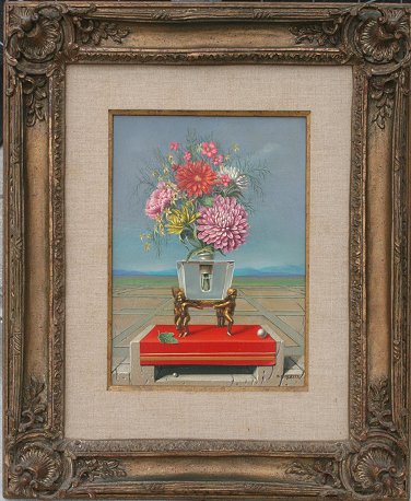 WHYTE, Raymond, (American, 1923-2002): Chrysanthemums in a Crystal Vase with Bronze Cherubs Supports, OIL/B, 10 3/4'' x 9 3/8'', signed, encased in pierce carved and gilded contemporary frame, 22 1/2'' x 18 1/2''. Hammer Galleries Exhibition Stencil #2144 New York, signed verso in pencil as well. Est. $600/800**
